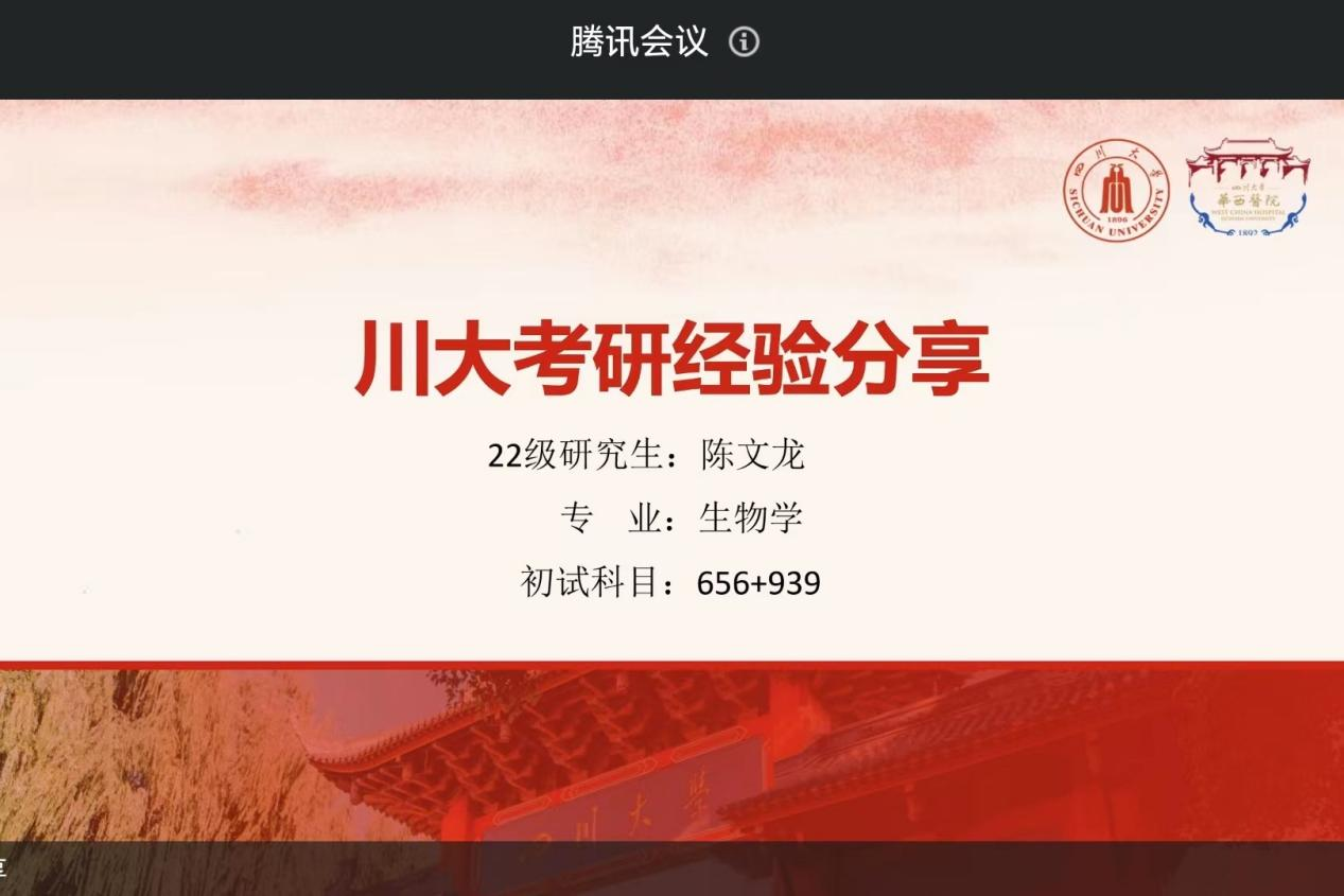 春风得意时,少年凌云日。为营造良好的学习氛围,激发同学们考研的积极性和主动性,提高考研学子的信心与决心,suncitygroup太阳集团于2023年11月18日召开了线上考研经验分享会。由成功上岸四川老员工物学的2023届生物技术基地的陈文龙学长为大家分享考研经验。此次分享会主要面向suncitygroup太阳集团2024届参加考研的毕业生,分享会由团委书记兼学工办主任季晓岚老师主持。工欲善其事,必先利其器。考研的成功离不开对考研的了解。会议中,陈...