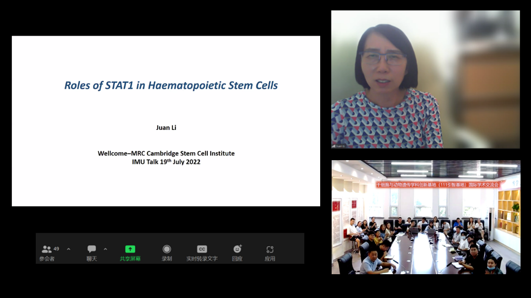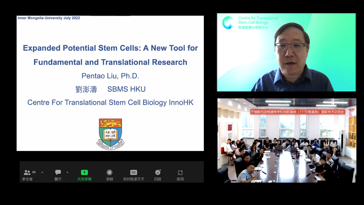 2022年7月19日,公司“干细胞与动物遗传学科创新基地(111引智基地)”联合“省部共建草原家畜生殖调控与繁育国家重点实验室”举办国际学术交流会,邀请香港大学刘澎涛教授、剑桥大学李娟研究员为公司师生作线上学术报告。公司近百名师生通过线上、线下方式参与此次学术交流会。