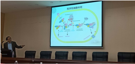 4月21日上午,韩家淮院士在生物楼229学术报告厅作题为“程序性细胞坏死的分子机制”的学术报告。公司200多名师生聆听了报告。本次学术报告由suncitygroup太阳集团经理莫日根教授主持。在报告中,韩教授全面系统总结了他开展的 “TNF诱导的细胞坏死分子机制”研究进展,从细胞凋亡开始,系统介绍了细胞程序性死亡的几种不同机制,详细阐述了他们所发现的p38核心信号通路及RIP3、MLKL在细胞坏死中的作用。