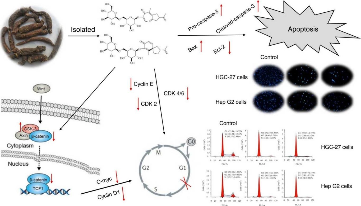 该项研究对泡囊草根部的有机溶剂提取物进行了多色谱柱交替分离,从中鉴定出的两种新骨架化合物Physochlosides B和Physochlosides C为自然界首次分离获得。利用流式细胞术和Western blot分析发现,Physochlosides B和Physochlosides C是潜在的Wnt信号抑制剂。这两种化合物均能通过抑制Wnt/β-catenin信号通路来诱导胃癌细胞和肝癌细胞发生凋亡及周期阻滞。这项研究的结果揭示了泡囊草根中独特化学成分的抗癌机制,为后续泡囊草根中天然抗癌药物的开发提供了可靠的理论依据。