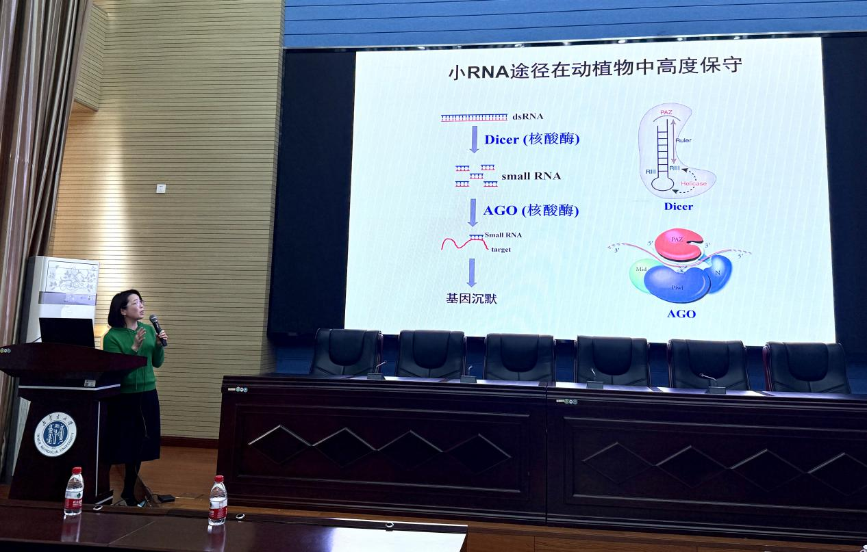 郑丙莲教授以“植物RNA产生、代谢与功能调控”为题,对非编码RNA进行了详细介绍。然后围绕DBR1(RNA去分支酶)如何介导套索RNA代谢和套索RNA代谢的生物学意义进行了本实验室相关课题的介绍,包括拟南芥中DBR1可以促进miRNA的产生、套索RNA滞留具有组织特异性、DBR1的功能在动植物中高度保守等研究。
