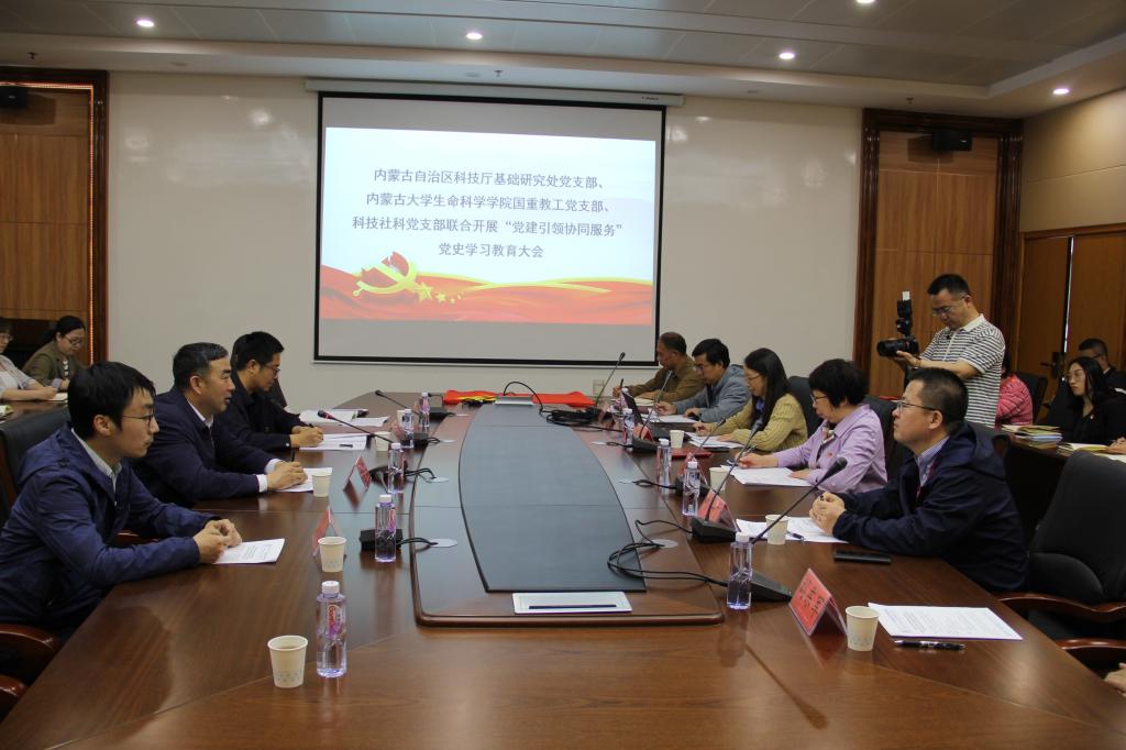 5月18日上午,内蒙古自治区科技厅基础研究处党支部走进太阳集团官方网站,和省部共建草原家畜生殖调控与繁育国家重点实验室教工党支部、公司科技社科党支部联合开展党史学习教育,同上一堂党课。科技厅基础研究处处长金龙、公司科技处处长牛一丁、公司党委书记张慧荣、经理兼国重主任胡薇,以及三个支部全体党员参加了本次活动。活动由科技厅基础研究处党支部书记金龙同志主持。