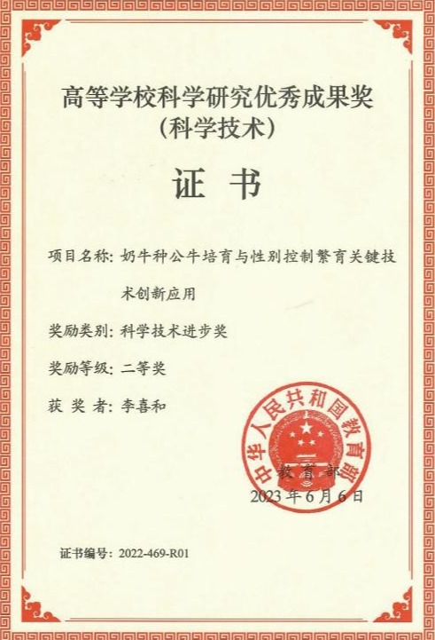 近日,教育部颁发了2022年度高等公司科学研究优秀成果奖(科学技术)获奖成果,公司李喜和教授团队牵头的“奶牛种公牛培育与性别控制繁育关键技术创新应用”获得了教育部高等公司科学研究优秀成果奖(科学技术)——科技进步二等奖。