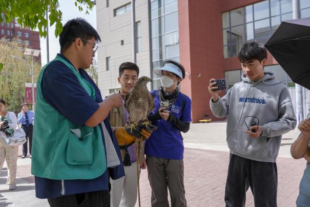 活动现场,大青山国家级自然保护区管理局展出了保护区内的濒危和特有植物、动物及大型真菌的展板,工作人员现场为观众讲述了管理局近些年在生物多样性保护方面的成就。由大青山野生动物园工作人员带来的蜥蜴、玉米蛇、鹰等活体动物吸引了广大师生驻足并进行了互动。