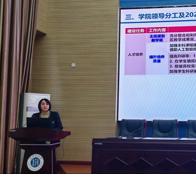 副经理王潇、那顺布和、倪挺及经理助理苑琳教授分别针对科研、研究生教育、人才引育和本科生教学等相关工作做出说明和部署。