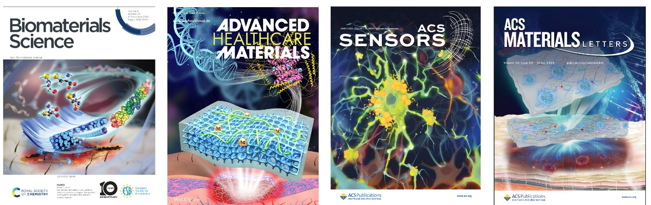 (1)Wang J, Li J, Sun Y, et al. Genetically Encoded Incorporation of IFN-α into Collagen-like Protein–Hyaluronic Acid Hydrogels for Diabetic Chronic Wound Healing[J]. ACS Materials Letters, 2024, 6: 4133-4141. (封面文章)