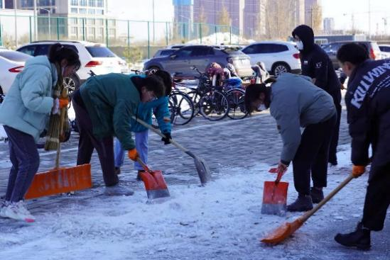在寒冷的环境中,志愿者们团结协作,不畏严寒,有序的清理道路积雪。他们有的挥舞铁锨,铲冰除雪,有的手拿扫帚,清扫路面,在大家不懈努力之下,经过两个多小时的奋力打扫,道上的积雪情况得到极大缓解,保证了生科楼前道路的安全畅通,为师生的生活与安全出行带来了便捷。