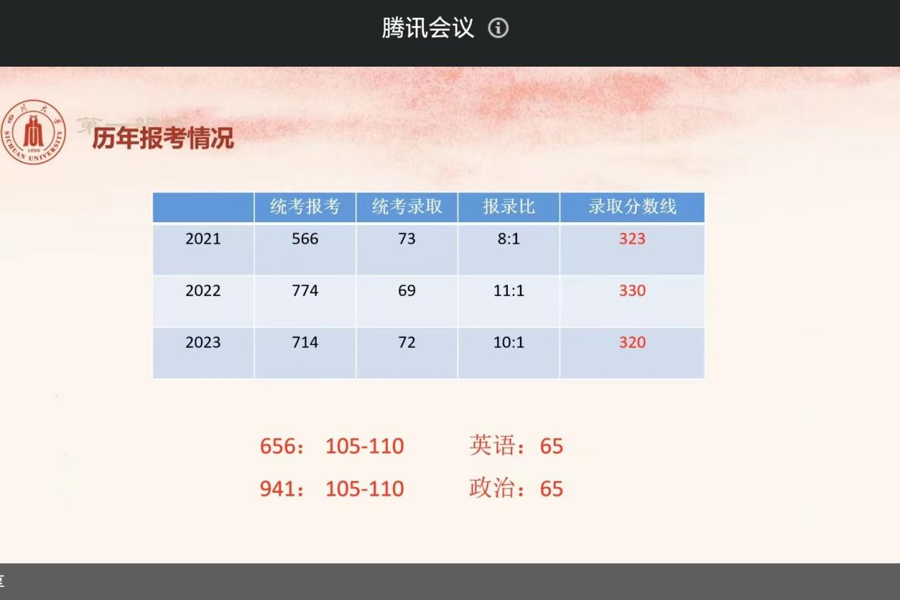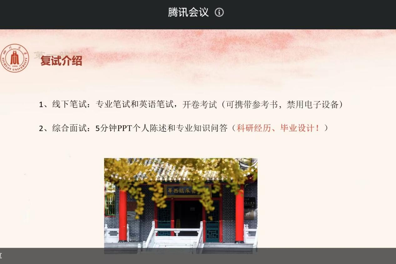 工欲善其事,必先利其器。考研的成功离不开对考研的了解。会议中,陈文龙学长从初试、复试两方面进行了分享。初试方面,陈文龙学长分享了初试中应考的科目、历年报考情况、题型以及备考意见。复试方面,陈文龙学长分享了线下笔试和综合面试中应做的准备及注意事项。在最后的答疑环节,学长对同学们的疑问耐心解答,使得同学们受益良多。