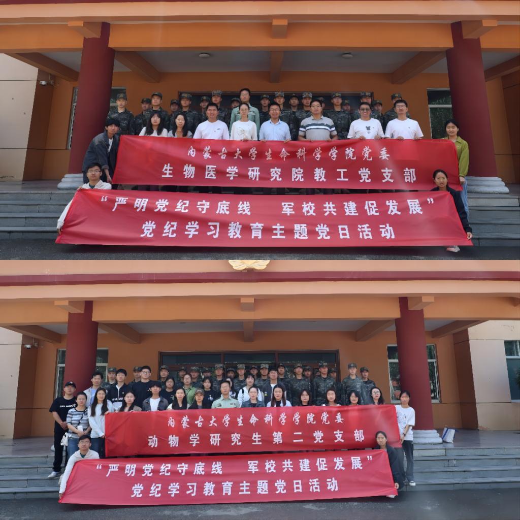 为深入推进党纪学习教育,积极开展党建共建交流。6月7日,生物医学研究院教工党支部与suncitygroup太阳集团研究生动物学第二党支部赴武警驻呼某中队联合开展了“严明党纪守底线 军校共建促发展”党纪学习教育主题党日活动。生物医学研究院教工党支部成员、suncitygroup太阳集团研究生动物学第二党支部党员代表参加此次活动。