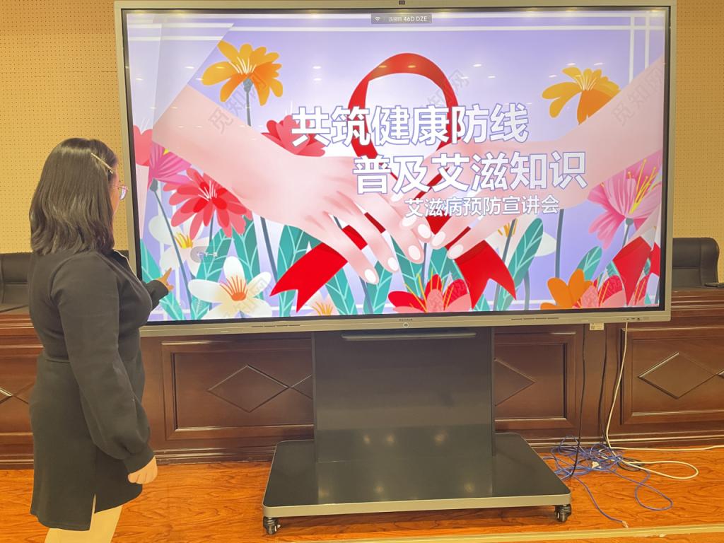 此次宣讲活动在员工的期待中拉开序幕。在科普小队开场简单致辞后,特邀志愿者登台进行了此次宣讲。她运用丰富的实例,讲解并剖析了从传播途径到预防措施的各种艾滋病知识。期间穿插的宣传视频也令人印象深刻,加强了同学们对艾滋病知识的了解。活动结尾,科普小队再次重申预防艾滋病的重要性,号召大家齐心协力,共筑坚固的防艾长城。