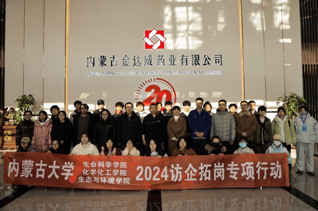 在内蒙古金达威药业有限公司期间。公司副总经理赵江波,技术部经理助理甄明,人力招聘主管王磊等陪同下参观了办公区与生活区,了解了整个公司运营状况与员工生活情况。双方还就人才培养、科研合作以及技术服务等方面的合作达成了初步共识。