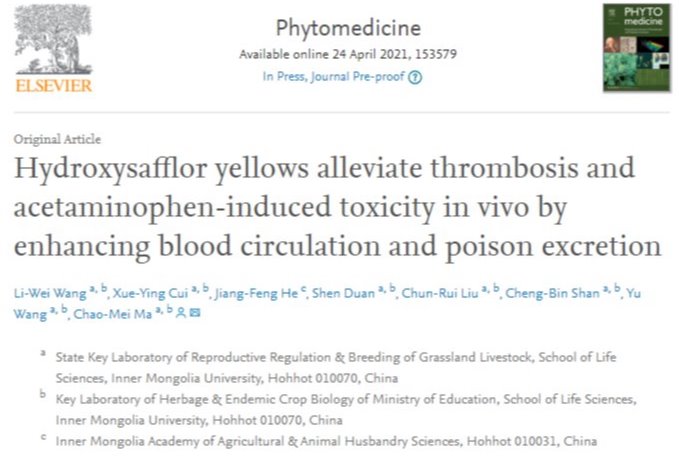 红花(Carthamus tinctorius L.)作为“活血化瘀”的传统中药,在蒙、藏等民族医药中也常用于治疗肝脏疾病。此外,以红花提取物为主要成分的血必净注射液能够有效清除由冠状病毒导致的炎症因子风暴或炎症反应,改善重型和危重型新型冠状病毒肺炎的全身炎症反应综合征或/和多脏器功能衰竭。内蒙古老员工命科公司天然药物与功能食品研究组对红花有效成分的保肝、抗血瘀作用和二者之间的关系进行探究。研究结果在Phytomedicine发表...