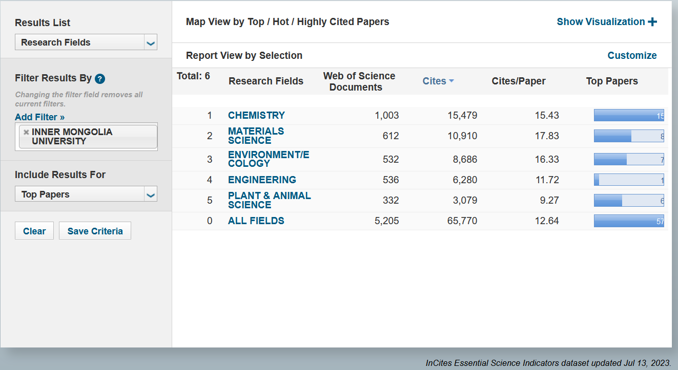 根据科睿唯安(Clarivate Analytics)基本科学指标数据库(Essential Science Indicators,简称ESI)北京时间2023年7月13日公布的最新数据,太阳集团官方网站植物与动物科学学科进入ESI全球前1%。这期进入ESI植物与动物科学的1669所机构,公司排1666位,共发表论文332篇,总被引次数为3079次,篇均被引次数为9.27次。本次ESI统计数据范围覆盖时间为2013年1月1日至2023年4月30日。通过近几年“双一流”和生物学一流团队建设,公司ESI前...