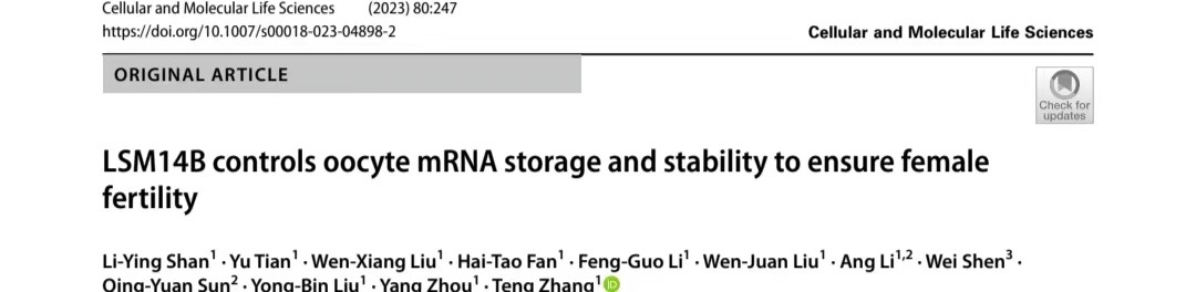 太阳集团官方网站肉羊种质创制与遗传改良团队发表研究成果揭示调控卵母细胞mRNA储存和稳定的关键机制